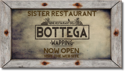 Since its launch in 2008, Gianfilippo’s Bottega Prelibato has established itself as a firm favourite for authentic Italian food and an intimate, lively atmosphere in the Shoreditch Triangle. The restaurant serves up seasonal, mouth-watering dishes ranging from a platter of oozing burrata and salty-sweet Parma ham to a comforting bowl of hand-made pappardelle with a rich wild mushroom sauce, washed down nicely with impeccably chosen Italian wine. The deli is a treasure trove of artisanal cured meats, organic vegetables and fresh snacks, whilst the art gallery is a constantly changing exhibition space that plays host to exciting and emerging Hackney artists. Basically, we keep it simple and tasty: a formula the Italians definitely approve of. Dinner: full menu and daily specials from 7.00pm. |
